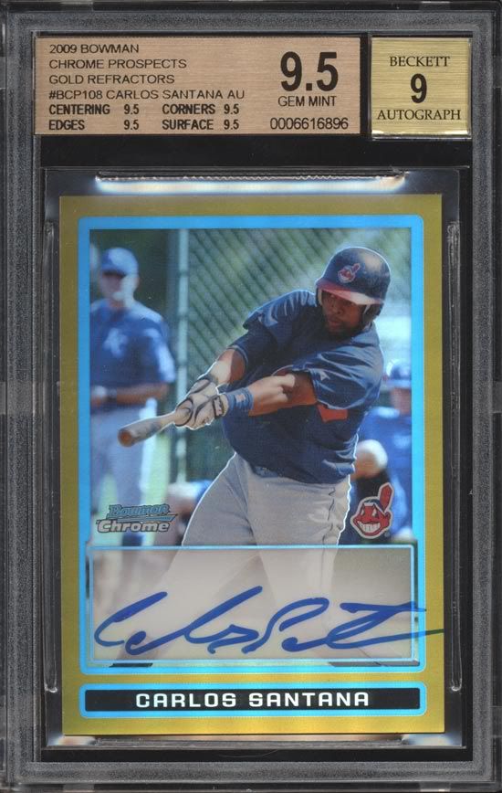 2008 Bowman Chrome Draft Josh Reddick Red Refrector Auto /5 - $500 ![]() 2009 Bowman Chrome Carlos Santana Gold Ref Auto /50 BGS 9.5/9 - $300 ![]() 2010 Bowman Chrome Jose Iglesias Blue Ref Auto /150 - $75 ![]() 2010 Bowman Chrome Starlin Castro Blue Ref Auto /150 - $200 ![]() 2010 Bowman Chrome Starlin Castro Orange Ref Auto /25 BGS 9/10 - $750 ![]() 2010 Bowman Chrome Draft Jameson Taillon Gold Ref Auto /50 - $285 ![]() 2011 Bowman Chrome Draft George Springer Blue Ref Auto /150 - $90