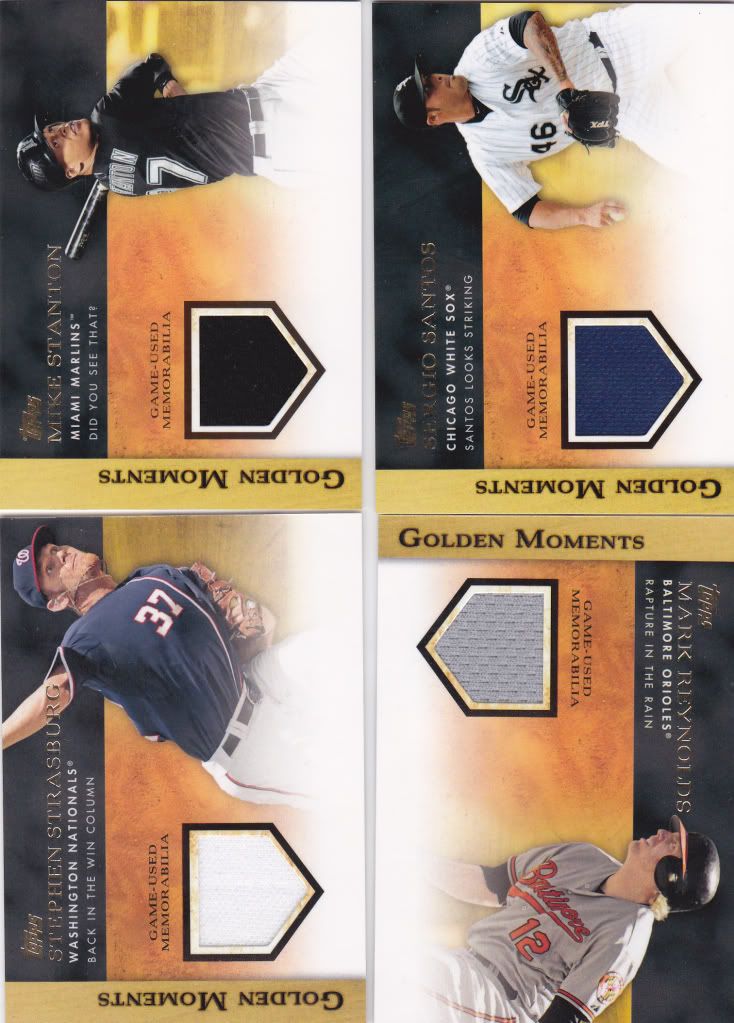 Got theis 4 from pack strate to collector box. Reynolds came with crease from factory can return for exchange or keep as is looks like they put to much jersey material when the sealed the card lol all others are fine $20 shipped or trade for Brandon nimmo auto, Miguel tejada auto , Clemente relic card Will add cash or other card for the rite deal. just added 2 more to the sale longoria and bautista so that six cards total. so lets say make offer on the 6 will add image of the other 2 later