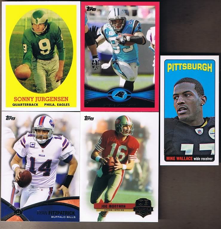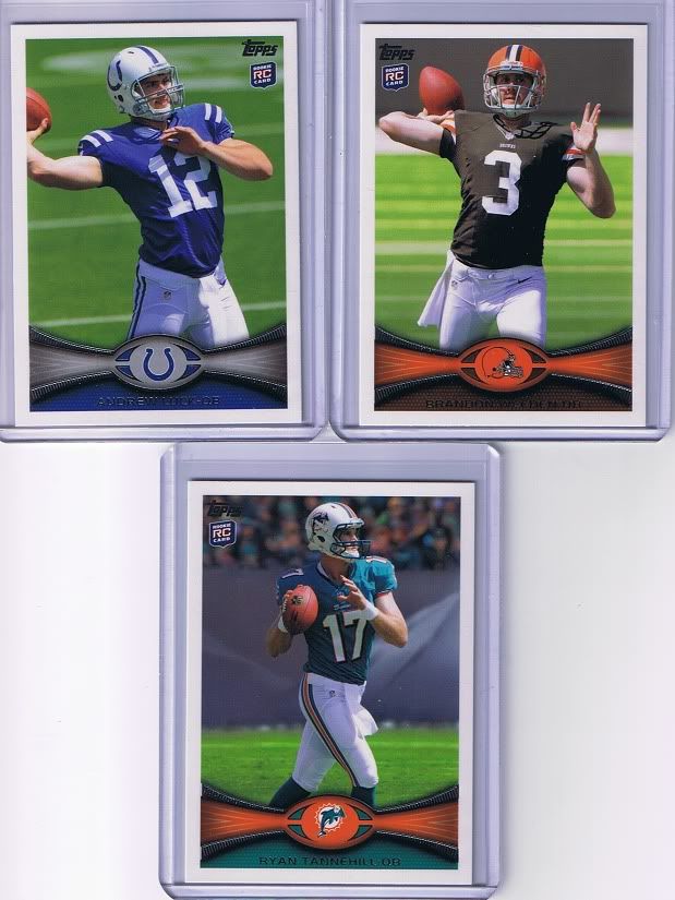 16 Rookies w/these 3 being the best Andrew Luck Brandon Weeden Ryan Tannehill ![]() Inserts and Parallels Jarius Wright Jumbo Jersey Willis McGahee/Lamar Miller Paramount Pairs Code Card Sonny Jurgensen Reprint Steve Smith BCA Parallel 118/399 Ryan Fitzpatrick Joe Montana QB Legends Mike Wallace ![]()