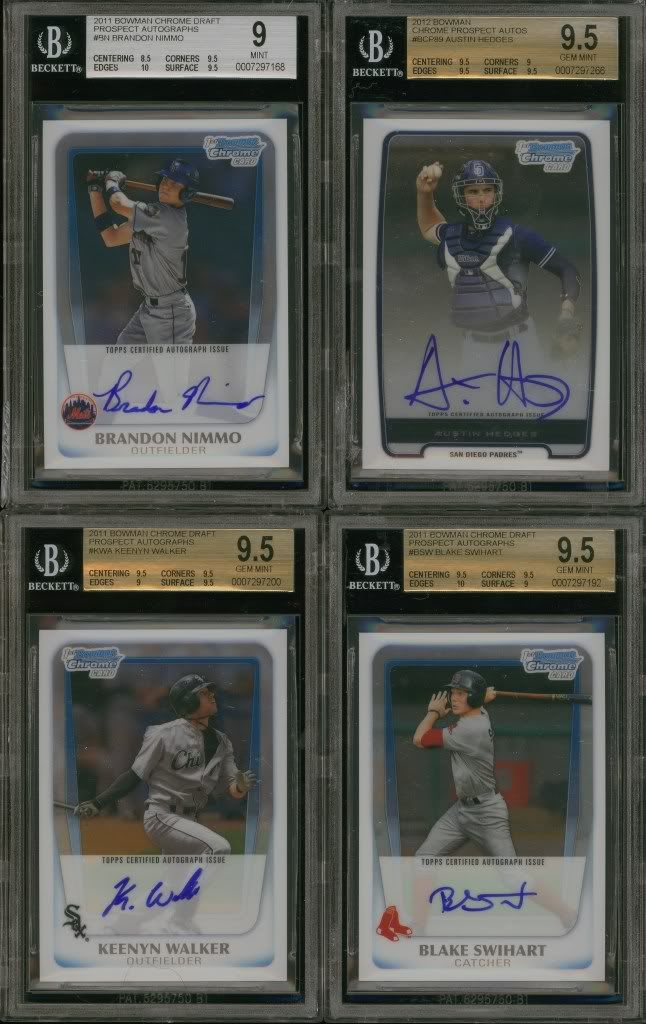 ![]() ![]() ![]() ![]() ![]() ![]() Springer ref 9.5 $60 ea Springer ref 9 $49 ea Nimmo 9 $16 SOLD Hedges 9.5 $18 Walker 9.5 $12 SOLD Swihart 9.5 $28 Crick 9.5 $18 SOLD Baez 9.5 $61 Springer 9.5 $40 Vogelbach 9.5 $38 Foltynewicz 9.5 $18 ea Foltynewicz green 9.5 $26 ea Foltynewicz sterling ref /199 9.5 $30 ea Foltynewicz chrome 9.5 $20 ea Mozo 9.5 $18 Owings /25 9.5 $30 Mahtook blue 9 $10 Hosmer gold 9 $33 ![]() ![]() ![]() ![]() ![]() ![]() ![]() ![]() ![]() ![]() ![]() Maronde Ref 1/5 $85 SOLD Machado green $105 Springer $120 Stanton Ref (10 auto) $160 SOLD Stanton (10 auto) $140 Mason Williams $120 SOLD Cecchini (POP1) $150 Harper /50 $220 Rendon 5/5 $200 SOLD Lawrie blue (scratch on left side) $260 Harper (dinged corners) $180 Last edited by mikecancelliere; 08-26-2012 at 05:37 PM. |