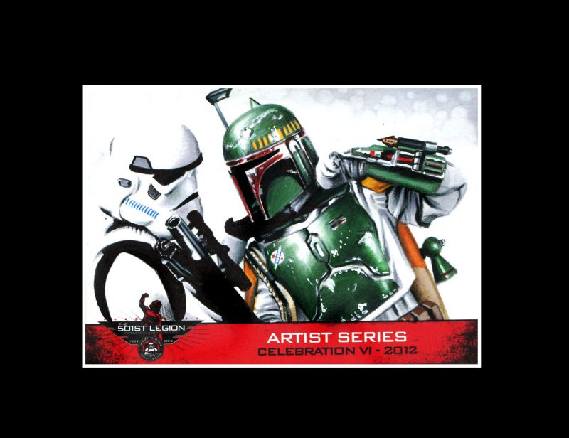 I have 2 Artist proofs for doing 10 cards for the 501st artist series at celebration 6 this year, and I have completed art on my first of the two APs. The artwork is drawn with copic markers and prismacolor pencil.