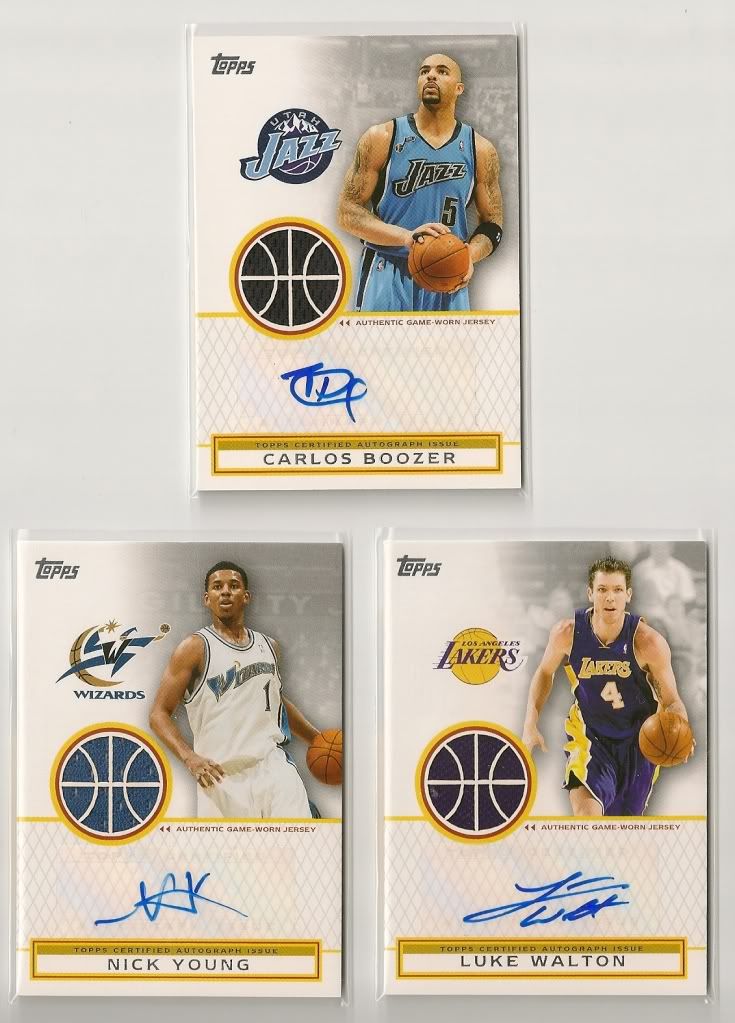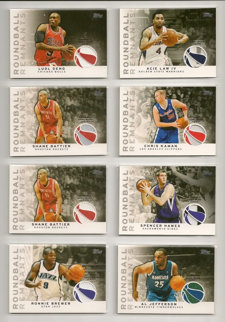 McDonald's All-American Autographs Demar DeRozan Auto ![]() Roundball Remnants Relics Boris Diaw 3 color Patch #'d 46/50 Al Jefferson GU Jersey Luol Deng GU Jersey Shane Battier GU Jersey Championship Material Relics Andrew Bynum GU Jersey Topps Chrome Refractor Parallels Lamarcus Aldridge /500 Antawn Jamison /500 Devin Harris /500 Gilbert Arenas /500 Topps Chrome Parallels Thaddeus Young /999 Jordan Hill RC /999 Brandon Jennings RC /999 Ricky Rubio RC /999 Jrue Holiday RC /999 Andrea Bargnani /999 Topps Gold Parallels Jordan Hill RC /2009 Darius Songaila /2009 Corey Brewer /2009 John Salmons /2009 Kenyon Martin /2009 Shawn Marion /2009 Charlie Bell /2009 Jason Kapono /2009 (2) Dirk Nowitzki /2009 Joe Alexander /2009 Leandro Barbosa /2009 Robin Lopez /2009 Kelenna Azubuike /2009 Chris Bosh /2009 Ryan Anderson /2009 Peja Stojakovic /2009 Marvin Williams /2009 Kyle Korver /2009 Jason Maxiell /2009 Beno Udrih /2009 Desmond Mason /2009 Jrue Holiday RC /2009 Acie Law IV /2009 Matt Barnes /2009 Ray Allen /2009 Quincy Douby /2009 Antoine Wright /2009 Amare Stoudemire /2009 Dominic McGuire /2009 Brian Scalabrine /2009 Jameer Nelson /2009 Devin Harris /2009 Larry Hughes /2009 Brandon Bass /2009 Tracy McGrady /2009 Goran Dragic /2009 Amir Johnson /2009 Deron Williams /2009 Roger Mason /2009 |