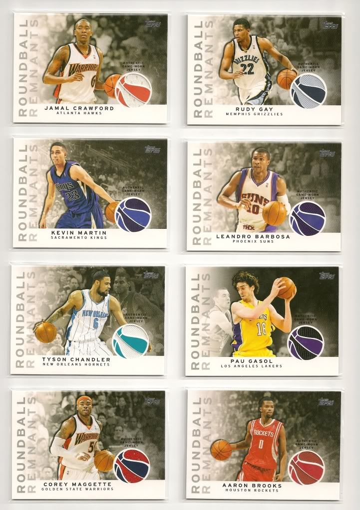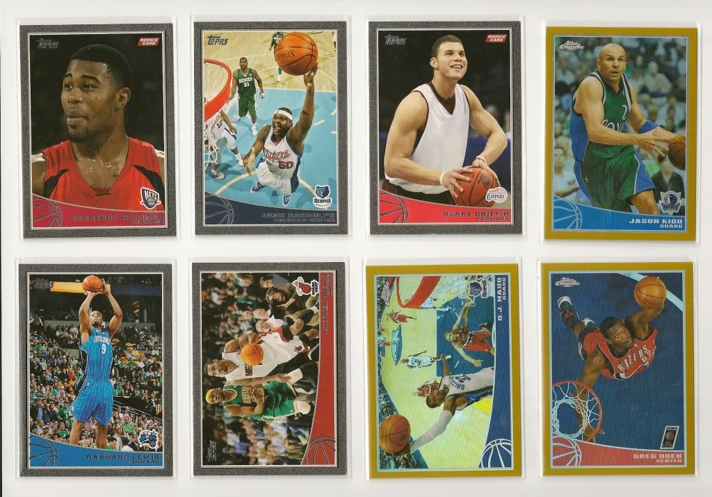 Topps Autograph Relic Luke Walton GU Jersey / Auto #'d 170/299 Roundball Remnants Relics Ronnie Brewer GU Jersey Rudy Gay GU Jersey All-Star Dual Relics Tracy McGrady Dual Jersey #'d 184/199 Topps Chrome Gold Refractor Parallels O.J. Mayo #'d 25/50 ![]() Topps Chrome Refractor Parallels Shawn Marion /500 Hasheem Thabeet RC /500 Manu Ginobili /500 Topps Chrome Parallels Tim Duncan /999 Shawn Marion /999 David West /999 Deron Williams /999 Anderson Varejao /999 Pau Gasol /999 Brook Lopez /999 Black Border Parallels Zach Randolph #'d 23/50 Mike Dunleavy #'d 25/50 Topps Gold Parallels Shane Battier /2009 Dominic McGuire /2009 Boris Diaw /2009 Rudy Fernandez /2009 Sean Williams /2009 Antawn Jamison /2009 Quincy Douby /2009 Luis Scola /2009 Damien Wilkins /2009 Randy Foye /2009 Kevin Martin /2009 Darius Songaila /2009 (2) Pops Mensah-Bonsu /2009 Matt Bonner /2009 Brook Lopez /2009 Jared Dudley /2009 Blake Griffin RC /2009 Joel Anthony /2009 Jared Dudley /2009 Demar Derozan RC /2009 George Hill /2009 Andrew Bogut /2009 Kyle Korver /2009 Chuck Hayes /2009 Robin Lopez /2009 Zach Randolph /2009 Glen Davis /2009 Ryan Anderson /2009 Tony Parker /2009 (2) Luther Head /2009 Marcus Camby /2009 Andrea Bargnani /2009 Keyon Dooling /2009 David Lee /2009 Beno Udrih /2009 Aaron Afflalo /2009 Charlie Villanueva /2009 Manu Ginobili /2009 |