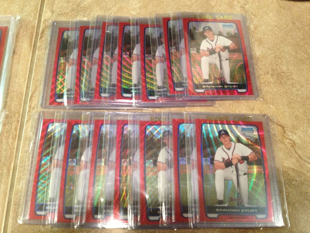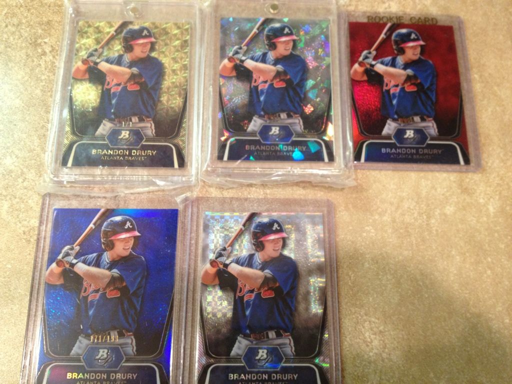 Here is my Red refractor set for Brandon Drury. PLEASE if you guys see the last one numbered 1/5 I obviously want it.