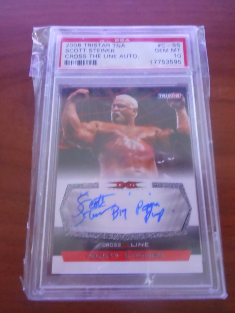 ![]() ![]() Brock Lesnar fighter worn relic auto $60 shipped firm ![]() Scott Steiner gem mint 10 auto inscription $30 obo