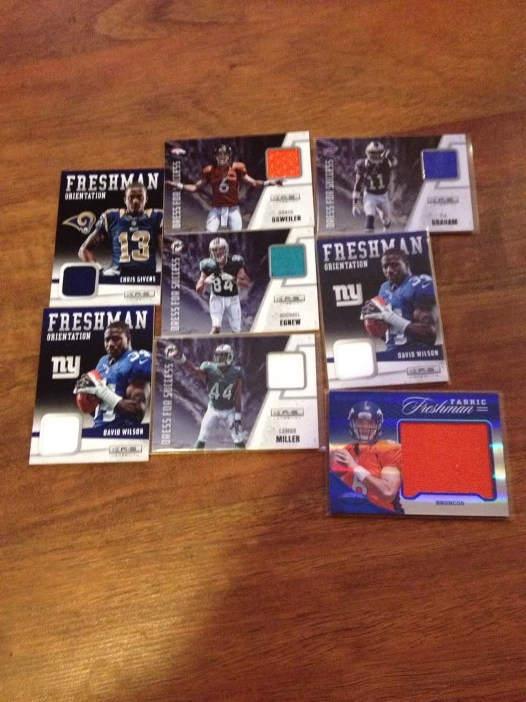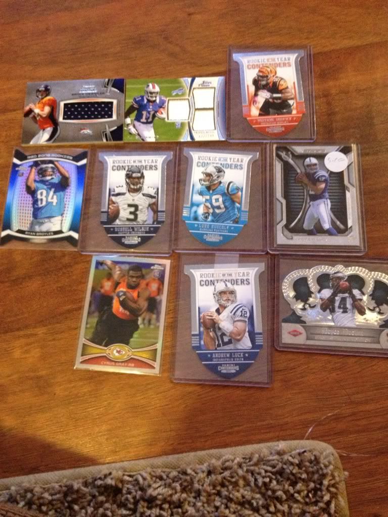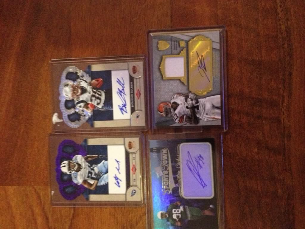 Looking for Brady,gronk,Hernandez , and wide receivers for pats, trich, Julio jones, tony Gonzales, William Moore is my main pc, lamar miller, Ryan tannehill, all current redsoxs and hof, Since I have to put a price I'm putting 120. But not what I'm looking for. Will sell individually shipping is 2.07 so shoot me a offer on a price. Or a trade. Need gone by tonight if possible. Pm me or leave scan here. Thanks