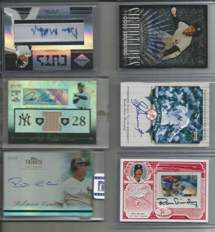 Mattingly $50 #d to 100 SOLD Cano $35 #d to 99 Girardi $30 #d to 100 Rizzuto $15 Guidry $16 #d to 49 Dent $5 ![]() $25 #d to 23 ![]() Gardners $8 each others $2 each ![]() Bauer Skowrun, Dent and Romine $5 each, others are $2