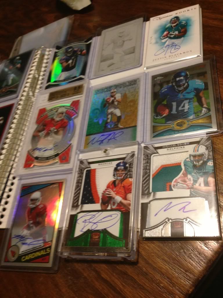 ![]() ![]() The lot is $200 Dlvd. I'm happy to break up. Alshon Blue redzone 44/50 $7 Michael Floyd Turkey Red Printing Plate 1 of 1 Sold Blackmon Prime Sigs ON Card auto 017/149 (this set in general beautiful) sold Michael Floyd 9.5 Topps finest atomic 8/10 super rare one guy has 3 of these $175 Nick Foles valiant auto on card $13 Justin Blackmon Variation Rc topps chrome $sold Michael Floyd Topps Chrome 1984 auto 7/15 super rare SOLD Brock Osweiler Crown Royal Green 7/49 auto (soft corners) SOLD Egnew crown royal auto 94/149 (sweet patch) $6 Doug Martin Redzone rc $2 Tannehill base and refractor rc topps chrome $8 Ray rice crown royal #/100 $1 Russell Wilson rc topps chrome $6 Travis Benjamin pink refractor $6 Bowman sterling black auto Michael Floyd $15 Turbin Crome auto (super small ding bottom right corner)sold Rg3 topps chrome rc $6 Anything purchase under $10 add 2bucks for shipping Last edited by Heroicdeck; 05-11-2013 at 04:07 PM. Reason: Big card sold price adjusted |