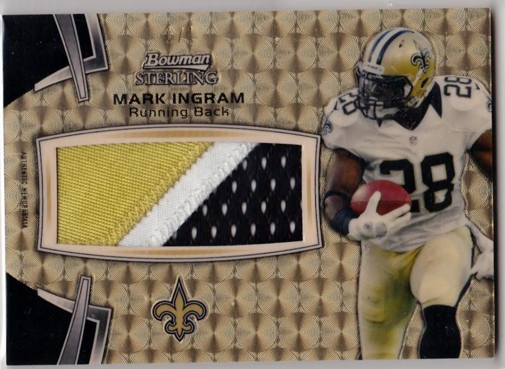 So far ive pulled 2 one of ones: a josh johnson topps letter patch and a roy helu printing plate.