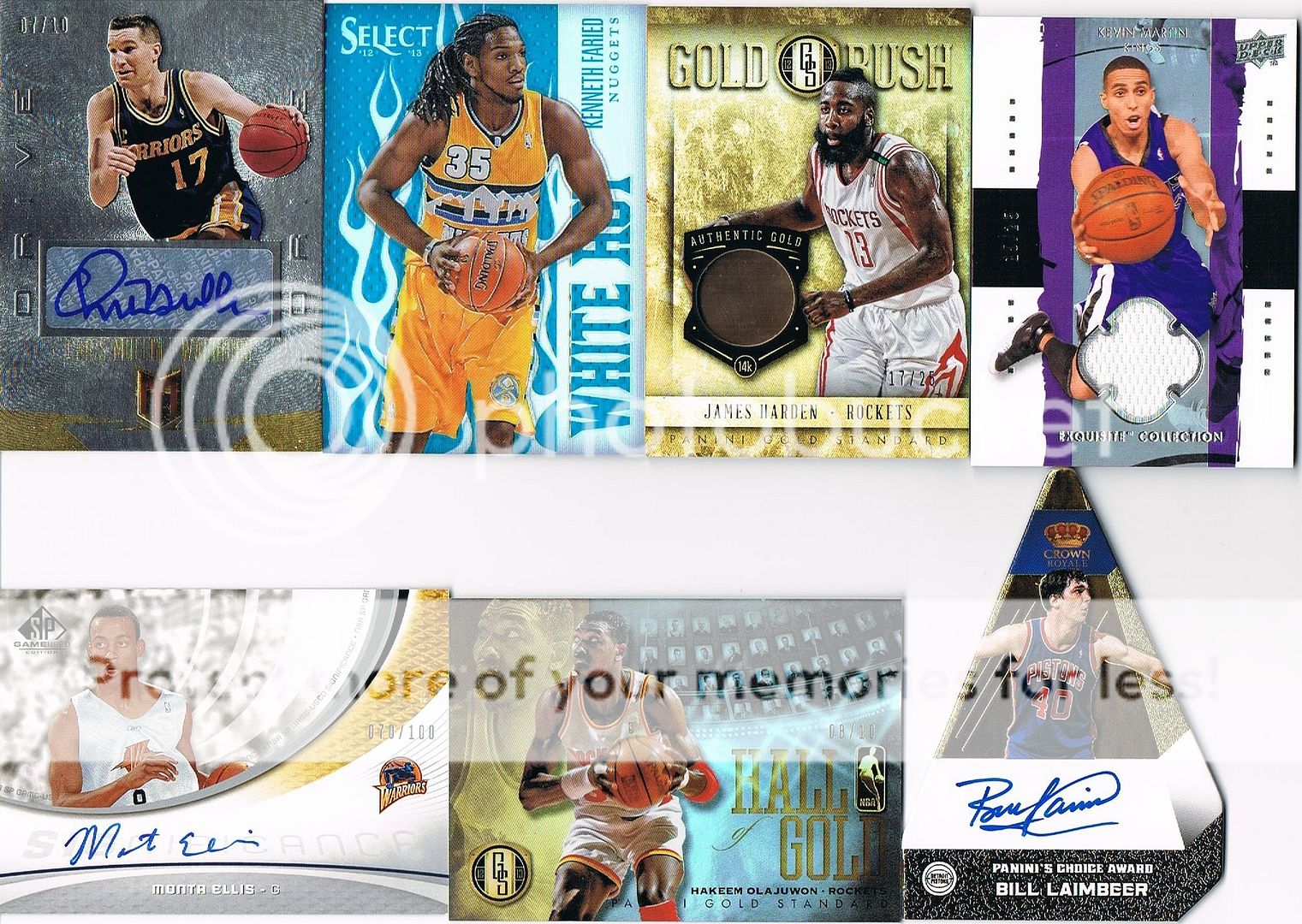 ![]() Chris Mullin auto 7/10 - 25 Kenneth Faried Select White Hot Prizm /25 - 15 James Harden Gold Rush 14k /25 - 25 Kevin Martin 09-10 Exquisite gu /25 - 20 Bill Laimbeer Preferred Gold auto /10 - 10 Monta Ellis SPGU rc auto /100 - 15 Hakeem Olajuwon Hall of Gold Platinum /10 - 15 ![]() Serge Ibaka lot - 7 Brilliance artist proof 9/10 Jersey Number! Crusade gu Select Prizm refractor Last edited by Mcpug; 09-06-2013 at 09:14 PM. |
