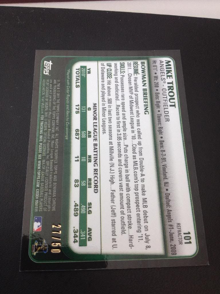 The roller coaster opening those packs was absurd... garbage, garbage, garbage, garbage... oh, gold... cool... OF, cool... Trout OMIGOD!... dinged corner... boo... #27!!!!... yeah!!!