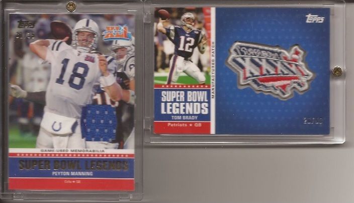 johnny manziel 2 color jersey (looks like stitching from the number) $20 Aaron Rodgers sp $15 ![]() Payton Manning 2011 topps jersey 31/50 SOLD tom brady 2011 topps super bowl patch SOLD ![]() also have a Tom Brady 2013 yellow printing plate for $60