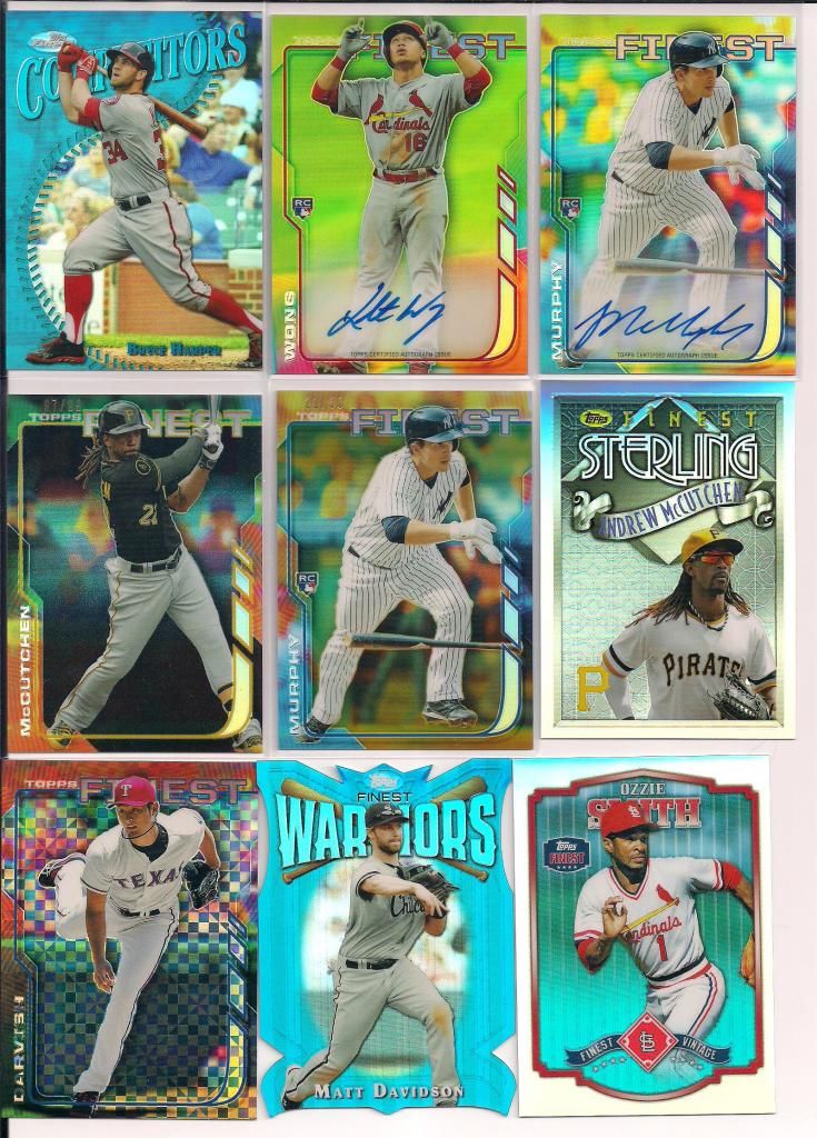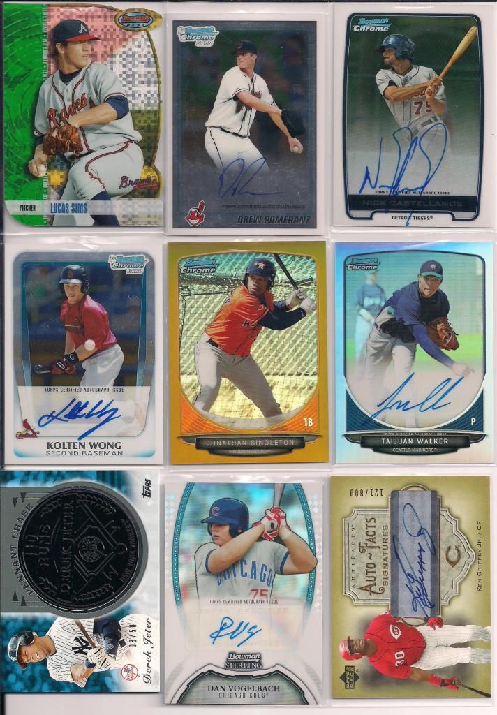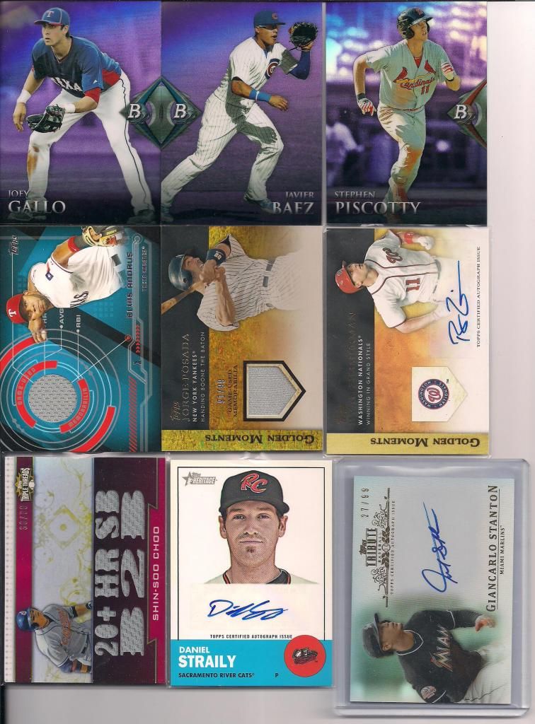 Trading is definitely top priority; this isn't a sale thread. If we can't make a deal, I'm open to selling; that's why you don't see prices. Anyway, here we go... ![]() Harper Blue Competitors /50 McCutchen Black /99 JR Murphy Gold (non-auto) /50 ![]() Lucas Sims /25 Singleton Gold /50 Walker Refractor Auto /500 Jeter /50 Vogelbach Refractor Auto /199 Griffey Auto /800 ![]() Pujols /736 (or something like that) Hosmer Black Refractor 35/100 (Jersey #) Chad Smith /96 Austin Aune /96 Escobar /25 ![]() Posada /99 Choo /36 Stanton /99 ![]() Schoop /25 Pujols, Strasburg GONE Fernandez NFT If you have any questions, ask away. I collect Indians, but I'm open to anything and happy to check buckets. Thanks!