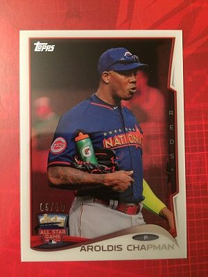 First off, I just realized the Glen Perkins autographed card in my last post is actually a refractor auto! I knew it was numbered to 399, but I didn't realize it was a refractor until last night! Next, I have a few more cards to share! After my busy weekend last week, I had completely forgotten that after Twinsfest, my girlfriend and I stopped by Target and got a few more packs! Here's what we got: 1 rack pack 2014 Bowman Platinum (3 packs, 1 purple refractor pack) 1 rack pack 2014 Topps Chrome (3 packs, 1 orange refractor pack) 1 loose pack 2014 Topps Update (12 cards) Here's the breakdown of what we got! Platinum A couple of base cards, but the prospect cards were the most notable of the base, including Soler, Joc Pederson, Trahan. After that, we really beat the odds, getting a Jason Kipnis Ruby and a Eddie Butler Xfractor in the same pack (both parallels are 1:20 odds!) Also hit a Gaby Sanchez Top Prospects card. In the purple refractor pack, we did alright, hitting Urias, DeShields, and Clayton Blackburn. Here's 2 highlight pics: ![]() ![]() Chrome The Platinum packs definitely beat out the Chrome packs this time around. Chrome wasn't a particularly bad break, just not as exciting. A couple of the better base cards were a Jeter, Goldschmidt, and a Bogaerts RC. Hit another Xfractor (Asdrubal Cabrera), and again beat the odds on an insert (1:12 odds on a Stephen Strasburg Chrome Connections). Orange refractor pack wasn't too exciting, but we got a Rafael Montero RC, Taijuan Walker RC, and a Salvador Perez. Highlight pic: ![]() Update As I said in my previous post, Update has always been good to me this year (for those of you that didn't read my last post, we bought 6 loose hobby packs and hit a Aroldis Chapman Clear parallel #ed/10 last time around!), so we decided to throw a couple bucks at a loose pack. Nothing crazy here- Best base card was a Betts RC. I did notice that 3 of the base cards were horribly off-center top/bottom (see Cruz in the picture below). Not a huge deal to me though, as these are probably doubles, triples, quadruples by now. Insert wise, got another Future is Now of Castellanos, but then hit an insert I haven't hit before! All-Star Game Access of Derek Jeter! Anybody know if those are retail-exclusive? I would think after opening 2 full jumbo boxes, plus a bunch of hobby packs, I would have hit an Access insert before know. Regardless, happy I got it, it looks great! Plus, it was 1:8 odds, so nice to hit that from a single pack! Highlight pic- ![]() That's all for today! Just a couple of packs I had forgotten about. Overall, they weren't super exciting, but I think we did pretty decent overall- Beat the odds in each of the 3 products, and I think we did fairly well, even without any jaw-droppers. So, thanks for another look! No trades or anything incoming right now, but I have a break until next Wednesday, so hopefully I'll be able to post here a couple times more soon. Thanks again!