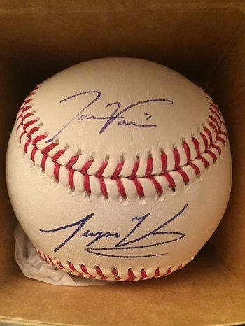I was hoping I would be able to post this thread sooner, but college makes it hard to do any trading/buying, so my first post hasn't been until now. But, it should be a fun one! I was home for Twinsfest this past weekend, and I had a great time! Let's get to my summary of my day and pickup pictures! I attended this year with my girlfriend. It was her first time going, and while it took her a bit of getting used to with all the waiting in lines through the day, she adapted and had a great time! The first thing we did when we got into Target Field was head to the yard sale. I was hoping to find something cool and affordable, but only found cool stuff ![]() In all seriousness, there wasn't a lot of stuff I was interested in. I actually found a Chris Herrmann game used bat, complete with MLB authentication sticker and everything, but it had a $75 price tag on it which was just too much for me this time around. It hurt a lot, but I put it back and moved on. Held some other cool stuff, including bats from Colabello, Koskie, jerseys of Sam Fuld, Jordan Shafer, and more cool stuff. I was definitely interested in some things, but based on prices, the only thing we came close to buying was a huge cardboard standup of Brian Dozier. This thing was probably 7 feet tall and would have been kinda cool/amusing/difficult for Dozier to sign later on in the day, but common sense won over (nobody wanted to carry the big thing around all day, and we already had something cool for Dozier to sign), so we left the yard sale empty handed. Next, we went down to the service level to walk through the dealer tables. I was looking to try to find something cool for Danny Santana to sign, as well as get a couple cards of the lesser named players for them to sign, but we struck out on both as well. The only cool things of Santana we saw were Fan HQs cleats and batting gloves of him (which were already signed anyways and too expensive at this time), but I promised myself a long time ago I would find a way to buy those sometime. But we passed on the cards too, as all of the dealers were trying to sell minor league cards of guys you have never heard of for 2 or 3 bucks, just because they knew they were signing today. Having struck out on everything so far, it was time to go get in line for the first autograph session of the day. The first line we went to was Danny Santana, Eduardo Escobar, Brian Duensing, Nate Hanson, and Treyson Vavra. The original plan was too have something cooler than a baseball or 8x10 for Santana to sign, and have a card for Hanson, but as I already mentioned, those plans didn't work out and we went with ROMLBs for everyone in this line. Check em out: Danny Santana ![]() Eduardo Escobar ![]() Brian Duensing ![]() Nate Hanson ![]() I will show the Vavra ball in just a little bit- You'll see why! With some new ink, we ran upstairs to the suite level to catch our next set of autographs: Kennys Vargas, Mike Pelfrey, Eric Fryer, AJ Achter, and Tanner Vavra. To my surprise, there was absolutely no line when we got there. It was down to the last 45 min of their allotted time, but I was still expecting to have to wait a bit. Not going to complain though! We had a mix of items to get signed for this line. Check them out! Kennys Vargas bat ![]() Zoomed in look at the auto: ![]() Mike Pelfrey ROMLB ![]() Eric Fryer ![]() AJ Achter picture will appear later on in this post Tanner Vavra- Here's the Treyson Vavra autograph as well! ![]() I asked Tanner if he recognized the signature already on the ball, and he laughed and said he definitely did! My plan is to get Joe Vavra to sign the same ball next year to complete the family. Worked out well so far and should be fun to complete! The bat I had Vargas sign was originally intended for Buxton to sign- I missed his line by 5 people last year. So close! I was able to get Miguel Sano to sign a bat last year though (the plan was to have Buxton and Sano, the stars of the future, sign matching bats). However, after seeing Buxton was paired with Tony Oliva this year, I knew the lines would be really long and didn't want to spend all my time in lines this year. So, I had an extra bat, and after seeing Vargas crush some baseballs last year, he was the easy choice to have it signed by! I love the way it turned out, signature looks really clean and everything! Love silver on black for bats. To my disappointment, none of the players so far had been very outgoing. I know some of the guys we had met already (Santana, Escobar, Vargas) may not have the best English, so I could understand it. But both of the Vavra brothers were really laid back and fun, and Palfrey and Achter were nice guys as well. Moving on! From there, it was time to honor my girlfriend's wish- Hit the photo session with Paul Molitor. We went back down to the club level, ran over to the photo station, and after a bit of confusion on how to actually go in the right way, we got a picture with Molitor in the last 5 minutes of his appearance. Timing was going really well so far! Molitor was a really nice guy, shaking both of our hands, asking our names, and thanking us for coming out, making a bit more small talk too. Those Minnesota guys, I'm tellin ya! ![]() After that, it was time to continue our busy morning by jumping back down to the service level and getting in the last "must do" autograph line of the day: Brian Dozier, Ryan Pressly, Tom Brunansky, and Tyle Duffey. The line was already pretty long when we got there, and I originally was worried we wouldn't be able to get through, but it turned out to not be any problem at all and we got through in just half an hour. Check out the goodies from this line! Dozier All-Star jersey ![]() Ryan Pressly ROMLB ![]() Tom Brunansky ROMLB ![]() Tyler Duffey (and AJ Achter) on a mini helmet I got years ago after buying ice cream at a ballgame ![]() This line was easily my top priority this year. The Dozier jersey looks absolutely awesome! After hosting the ASG this past yea