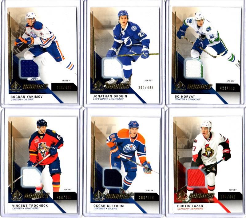 Shipping $2.50 to US and $6.50 to Canada no matter how much you buy. Shipping $6.50 for 2 cards to Europe, $9 for 3-5 cards, $12 for 6-10 cards. Sorry USPS is killing the price for international. ![]() Authentic Fabrics - Peeters - $3, Niemi - SOLD, Kane - SOLD, Eakin - SOLD ![]() Base Jerseys Fleury 2 color - $6, Ovechkin - $5, Kopitar - $4, Subban - $5, Lundqvist - $3, Messier 2 color - $7, Ladd - SOLD, Lack - SOLD, Pacioretty - $5 ![]() Base Jerseys Howard - $3, Nash - $3, Niemi - SOLD, Backes - $3 ![]() Rookie Jersey #d/499 Horvat 2 color - $10, Lazar - $5, Drouin - $10, Yakimov - $4, Klefbom - $4, Trocheck - SOLD ![]() Rookie Jersey #d/499 Rask - $3, Sam Reinhart - $8, Griffin Reinhart - $3, Burakovsky - $5, Knight - $2, Draisaitl - $6 ![]() Rookie Jersey #d/499 Nurse - $6, Mayfield - $2, Khokhlachev x2 - $3 each, Sissons - $2 ![]() Triple Jerseys Ramo/Smith/Lack - SOLD, Moore/Zuccarello/Hagelin - $15, Lehtonen/Kuemper/Pavelec - $8, Bobrovsky/Horton/Schultz - SOLD, Rask/Niemi/Lehtonen - SOLD ![]() Keith/Doughty Dual - $4, Hall/Yakupov Dual - $4, Bernier Legacy - $3, Mason Legacy - SOLD, Kane Legacy - SOLD, Lemieux Legacy - $15 ![]() Ekblad Rookie Autos x2 - $40 each, Brossoit Rookie Jersey Auto - SOLD, Percy Rookie Jersey Auto - $7, Teravainen Rookie Jersey Auto - $45, Sproul Rookie Jersey Auto - $12 ![]() Rookie Autos Teravainen - $35, Sekac - $35, Klefbom x2 - $10 each, van Riemsdyk - $30, Kevin Hayes - $25 for code ![]() Wotherspoon Rookie Auto - $10, Dano Rookie Auto - $10, Brossoit Rookie Auto - SOLD, Hammond True Rookie #d/30 - $25, Czuczman True Rookie #d/24 - $25, Wennberg True Rookie #d/41 - $55 ![]() Price Base #d/31 - $25, Lemieux Base #d/66 - $25, Skinner Base #d/53 - $5, Richter Base #d/35 - $25, Richter Auto - $20, Bernier Auto - $15 ![]() Yakimov Patch #d/99 - $20, McKegg Patch #d/99 - $20, Trocheck Patch #d/99 - $10, Weber Patch #d/50 - $10, Howard Patch #d/99 - $8, Benn Patch #d/50 - $20 ![]() Rattie Rookie Patch Auto #d/49 - $30, Percy Rookie Patch Auto #d/49 - $30, McKegg Rookie Patch Auto #d/49 - $25, Dubinsky Stick #d/90 - $20, Grabner Patch #d/35 - $25 ![]() Eberle Draft Day Marks #d/10 E or B - SOLD, Visentin Draft Day Marks #d/35 V or N - $20 each, Namestnikov Draft Day Marks #d/35 O - $25, Forsberg Draft Day Marks #d/35 F - $65 ![]() Gibbons Patch #d/99 - SOLD, Maatta Patch #d/99 - SOLD, Klein Patch #d/99 - $18, Clifford Jersey - $4, Maatta Jersey - SOLD, Klein Jersey - $3 ![]() Kruger Jersey - $4, Bernier Jersey - $8, Gionta Jersey - $3, ![]() Lindholm Jersey SP - $8, Gibbons Jersey - $3, Muzzin Jersey - $3 Rob Blake Supreme Stick #d 04/12 (jersey number) - $100 Bure/Lemieux Dual Patch #d/25 - SOLD Saad Stadium Series Commerative Patch #d/8 - $150 ![]() Clarkson Net Cord #d/35 - SOLD Zetterberg Net Cord #d/35 - SOLD ![]() ![]() Ramo/Smith/Quick/Niemi/Lack/Scrivens 6 Patch #d 3/6 - $150 Feel free to post or pm me. Looking to move as much as possible here. Thanx Ron Last edited by vodkalodka; 02-01-2015 at 03:39 PM. |