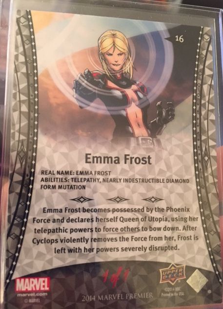 ![]() ![]() 2014 Marvel Premier Emma Frost 1/1 Red Spectrum |