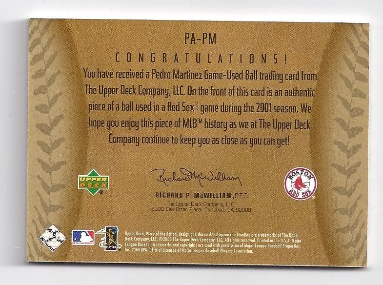Still looking for Pedro, Manny and Red Sox stuff in general. Mainly autos, and nice GU [ie, not one color jersey swatches] Willing to trade or buy