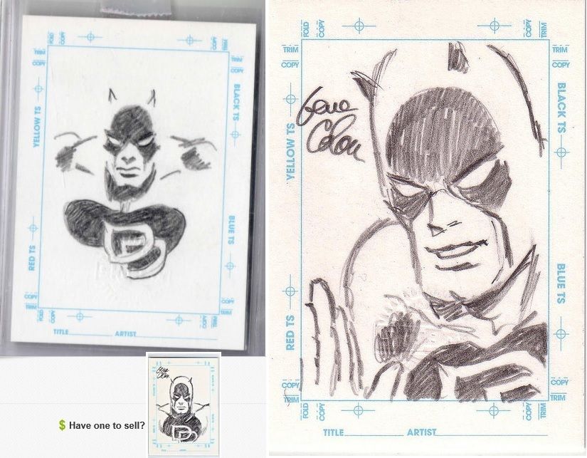 Marvel Masterpieces Universe X MEN Spider MAN Silver AGE Creators Sketch Cards | eBay From the auction's 3rd photo: ![]() My holy grail would be from the same series, except the character would be Daredevil by Gene Colan: ![]() I should really create a saved search for it...