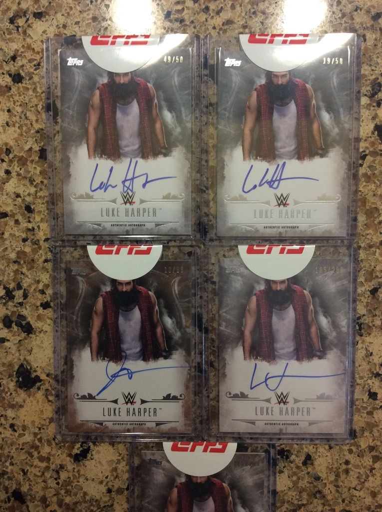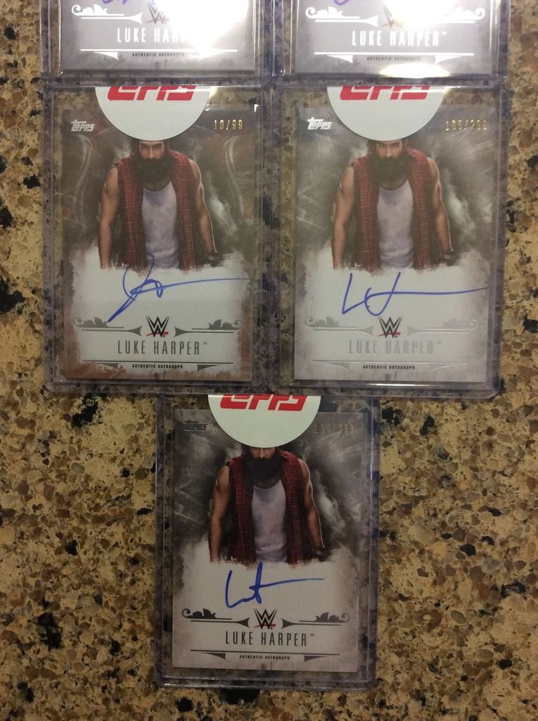 The base autos are hard to find for some reason, especially at a reasonable price. Check the BTS threads on here, lot of WWE lots for sale, Wyatt Family stuff too. |