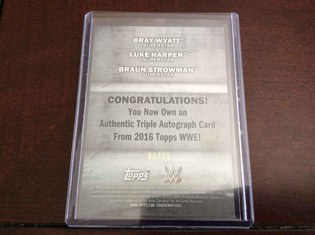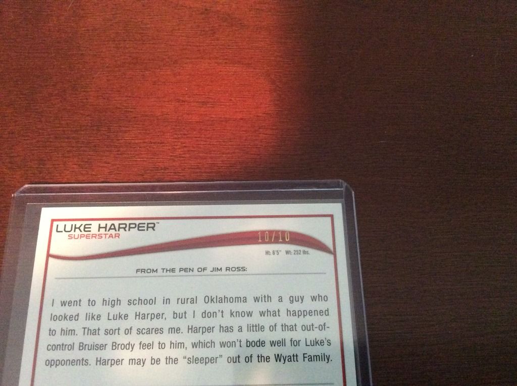 Such an awesome collection! I just started collecting WWE cards within the past year and have been focusing on The Wyatt Family. It took me FOREVER to find a base Topps Harper auto. I'm pretty jealous of your collection! Definitely one of the most underrated superstars on the roster.