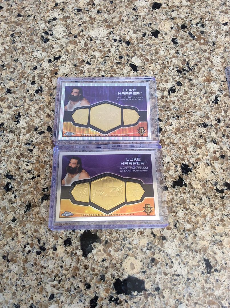 I've made a lot of great pick ups since my last update and wanted to share!!! 2015 Topps Heritage Printing Plates ![]() 2016 Topps - Yellow Printing Plate Auto and Silver /25, Gold 10/ Medallions ![]() ![]() 2016 Topps Heritage Magenta Plate and Bronze Mat Relic ![]() 2016 Topps Undisputed Magenta Plate Auto, Gold Base /10 and Complete Rainbow ![]() ![]() ![]() 2016 Topps TNF - Black Plate, Base & Parallels, Gold Shirt Relic /10, Base Shirt Relic, Gold Mat Relic /10, Silver Mat Relic /25 ![]() ![]() 2017 Topps Road To Wrestlemania Insert ![]() 2017 Topps Base and Parallels ![]() 2017 Topps Undisputed Plates, Base and Parallels, Auto Relics ![]() ![]() ![]() *** If you happen to have anything that I don't have, please let me know, I'm pretty easy to deal with and always looking to add to the collection!!! *** |