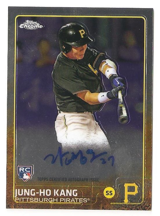 Pulled a Kris Bryant and Joc Pederson base rookie along with the following 'hits' SP High Number Rookie: Noah Syndergard ![]() Purple Refractor #124/250 Vimi Garcia ![]() Green Refractor #16/99 Travis D'arnaud ![]() Auto's Bryce Brentz ![]() Jung-Ho Kang ![]() Pretty good timing with the Kang, card appears to be pretty well centered with a nice Clean Auto!