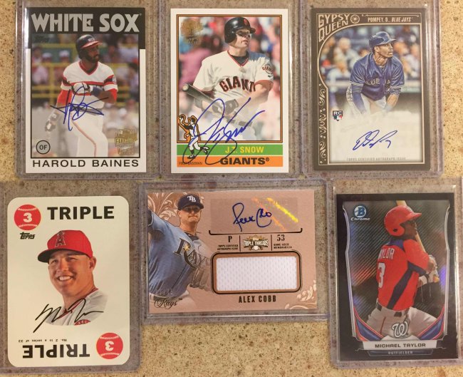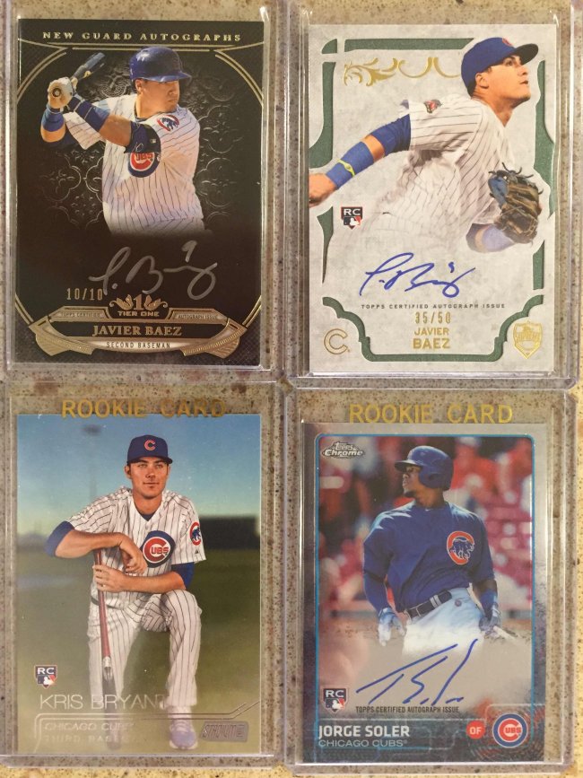 Rice /25 - $12 SOLD - AndrewT206 Hanley /99 - $3 Rusney - $16 SOLD - AndrewT206 Middlebrooks /50 - $3 ![]() Polanco /50 - $8 SOLD - thewild3 Reggie /199 - $5 SOLD - nikpounder Griffey, Jr. /199 - $5 SOLD - nikpounder Harper /199 - $12 SOLD - nikpounder ![]() Harper Fire Die Cut - $1 Trout Mini Refractor - $1 ![]() Matheny /299 - $11 SOLD - STLCroyards Wong /75 - $20 Wong Jersey - $2 Holliday Orange /25 - $1 Cooney Green /75 - $3 Martinez Framed - $1 ![]() Baez /10 - $30 SOLD - bubba300 Bryant Stadium Club - $6 SOLD - nikpounder Baez /50 - $18 SOLD - bubba300 Soler - $10 ![]() Valenzuela /30 - $30 SOLD - themboyz Braun /399 - $1 SOLD - nikpounder Teixeira - $8 SOLD - bubba300 Castilla - $1 SOLD - thewild3 Santiago /10 - $5 Ferrell Cubs - $8 ![]() Pederson (3 Card RC Lot) - $2 SOLD - nikpounder Spangenberg Auto and /199 (2 Card Lot) - $2 ![]() Gordon /50 and Perez /25 (2 Card Lot) - $7 Montero /399 and Lagares (2 Card Lot) - $5 ![]() Purples /150 & /250 + Mini /50 (5 Card Lot) - $2 ![]() Taylor /10 - $20 Trout - $4 Baines - $5 SOLD - nikpounder Snow - $4 SOLD - nikpounder Pompey - $2 Cobb /75 - $9 ![]() Underwood /150 - $22 SOLD - thewild3 Herrera /150 - $8 Flores /500 - $4 SOLD - nikpounder Valera /500 - $1 SOLD - thewild3 Reyes /99 - $15 Ramirez 1/75 - $16 ![]() 5 Card Chrome Auto Lot - $3 SOLD - thewild3 ![]() Ripken, Jr. Gold Foil - $4 Cron /249 - $4 SOLD - thewild3 Fister - $4 Mesoraco - $1 SOLD - thewild3