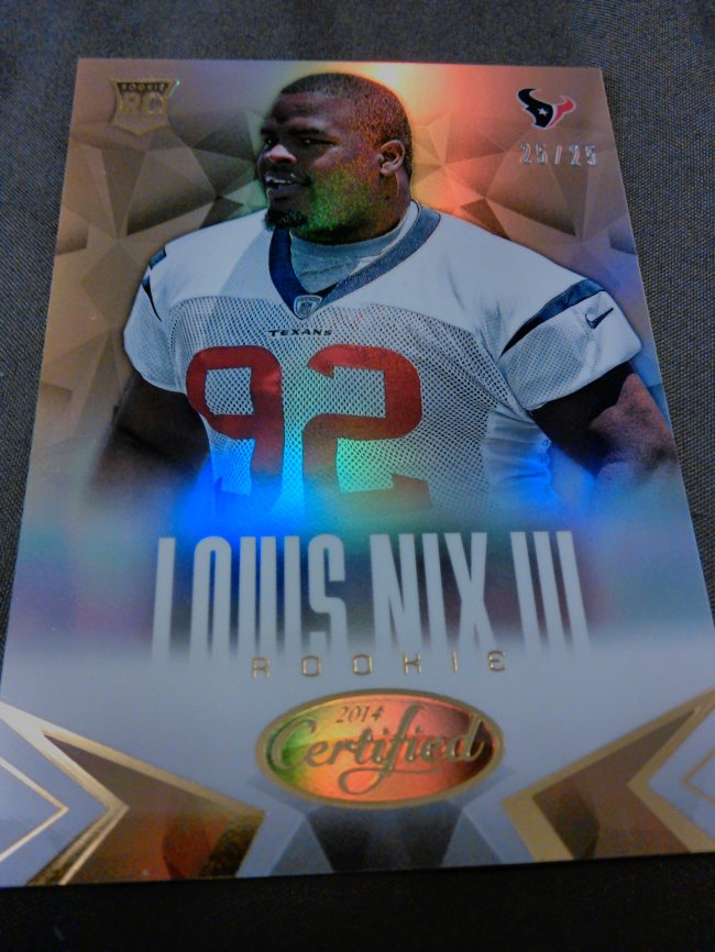 *add-on price is only valid when buying more then 1 card. If interested solely on add-on card. Please contact me for price. Thanks Mike Evans ***SOLD*** (251/299) ![]() Strata Signature Relic (15/30) $30 dlvd ![]() Select RC Jersey Blue Parallel (22/50) $4 dlvd ![]() TRI*STAR Mini Helmet $40 dlvd ![]() ![]() T.Y Hilton Elite Marks (163/199) $10 dlvd ![]() Valor (106/170) $13 dlvd ![]() Elite Marks (030/199) $10 dlvd ![]() Brandin Cooks Finest Rookie Auto Patch (68/75) Red Refractor $11 dlvd ![]() Finest Rookie Auto Patch $7 dlvd ![]() Finest Rookie Auto Patch (25/75) Red Refractor $11 dlvd ![]() Houston Texans Certified (275/699) $ 6 dlvd ![]() Tom Savage Orange Prizm Auto $4 dlvd ![]() Elite Blue Foil Auto $4 dlvd ![]() Strata Clear Cut Auto Relic (16/50) $9 dlvd ![]() *Certified Gen X Patch Red Parallel (289/299) $2.55 (add-on) ![]() Strata Signature (01/50) $15 dlvd ![]() CJ Fiedorowicz (#/99) $3 ea. ![]() Elite Gold Status Auto (095/199) $3 dlvd ![]() *Prizm Power Red (#/125) $1 (add-on) ![]() Jadaveon Clowney Triple Threads $9 dlvd ![]() Certified (158/199) $14 dlvd ![]() Totally Certified Mirror Red RAP (01/25) $22 dlvd ![]() *Crown Royale Rookie Royalty (#/99) $3 (add-on) ![]() *Certified Gen X Patch (315/599) $2 (add-on) ![]() Dress for Success (03/25) $5 dlvd ![]() Louis Nix III Panini Logo Prizm Auto (#/35) $4 dlvd ![]() *Certified Gold Parallel (25/25) $1.50 (add-on) ![]() Case Keenum Totally Certified $4 dlvd ![]() *Brian Cushing (09/15) $3 (add-on) ![]() Doug Martin *(086/299) $3 add-on