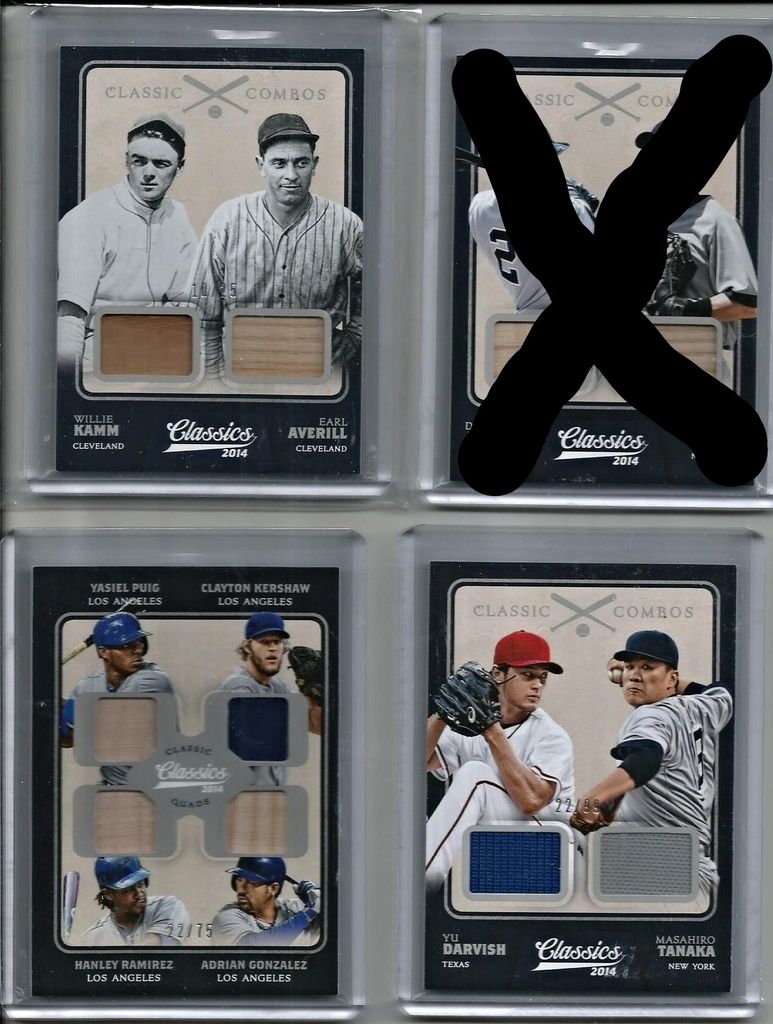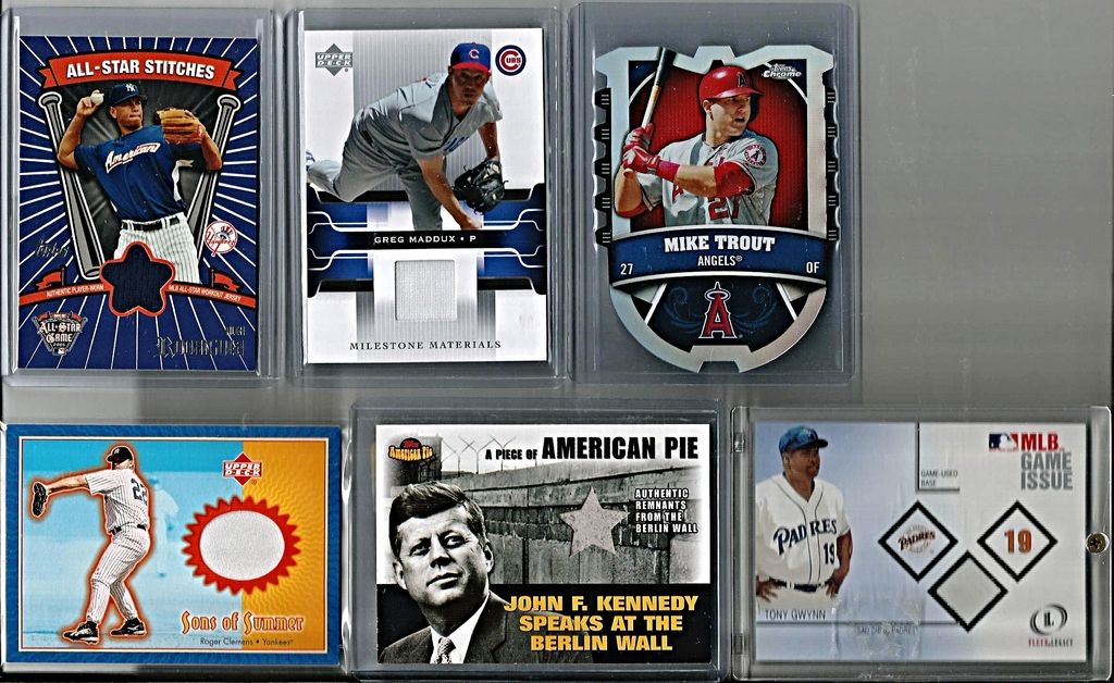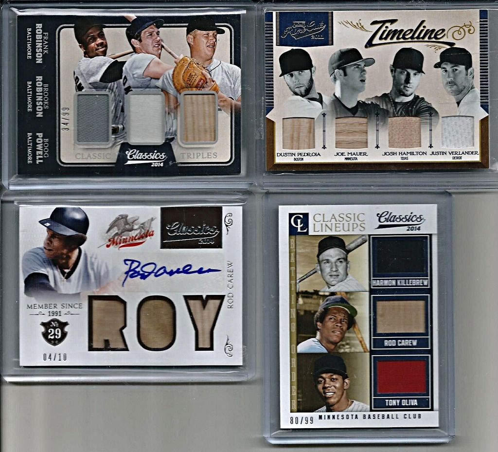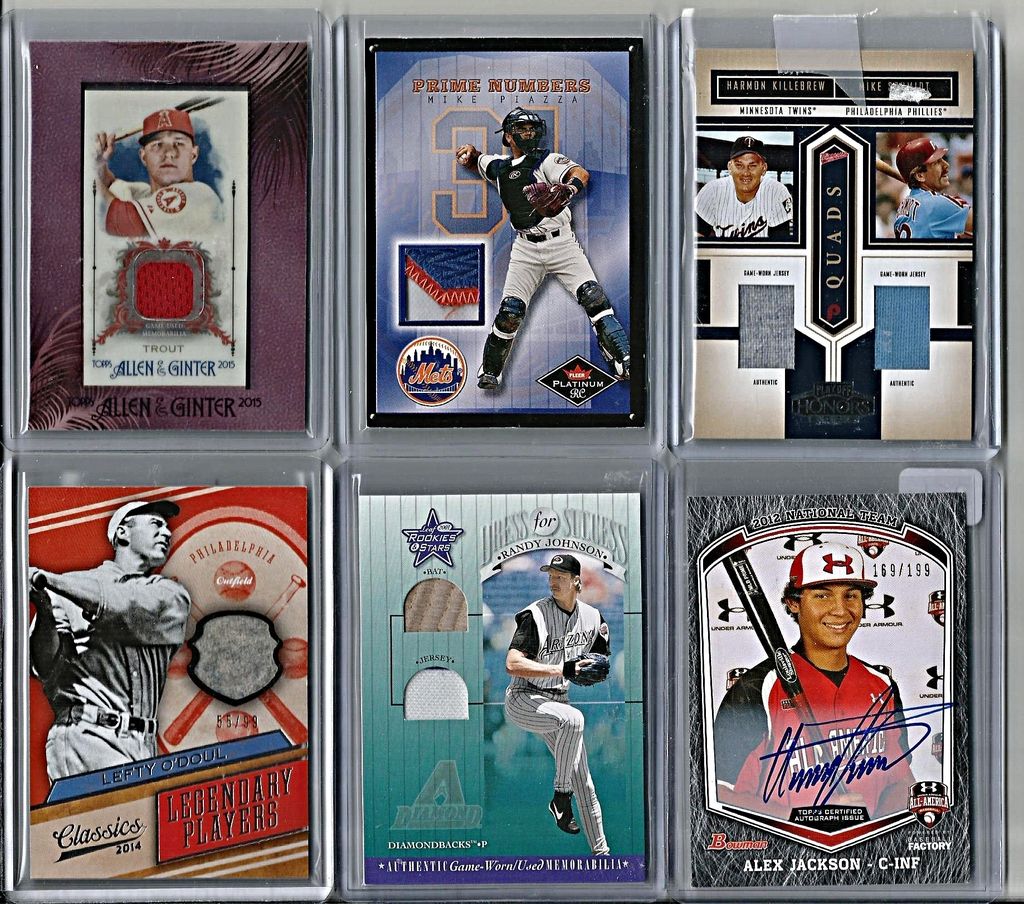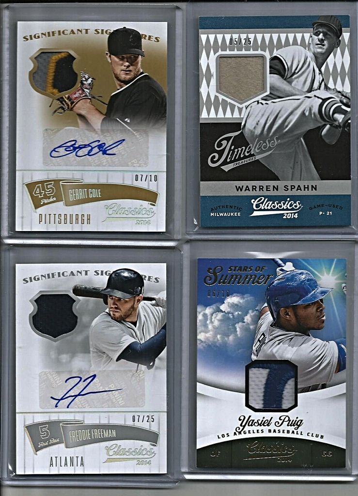 PAYPAL ONLY - U.S PLEASE IF YOU NEED FURTHER PICS JUST LMK AND I WILL SUPPLY THEM - THESE ARE THE EXACT CARDS YOU WILL BE RECEIVING SO TAKE A LOOK! $2.50 SHIPPING NO MATTER HOW MANY YOU BUY!! ![]() Triple Jersey Bat Jose Abreu Chris Sale Alexei Ramirez 09/27 - $10SOLD 2015 triple threads chris sale jersey #32/36 - $6 2015 triple threads Jose Abreu Auto Bat /99 - $22 2015 Triple Threads Chris Sale Auto Jersey #05/18 - $22 2015 Topps Triple Threads Relic Combos Gold #TTRCFSK Craig Kimbrel/Andrelton Simmons/Freddie Freeman #5/9 great multi color patches - $18 2014 Classics October Heroes Materials Combos #17 Pablo Sandoval/99 bv - $25 - $5 ![]() 2015 Topps Allen and Ginter Framed Mini Relics #FMRMTR Mike Trout - $22 2001 (METS) Fleer Platinum Prime Numbers #12 Mike Piazza 3 CL PATCH - $12 2004 Playoff Honors Quad Material #11 Harmon Killebrew Jsy/Reggie Jackson Jsy/Mike Schmidt Jsy/Sammy Sosa Jsy#006/100 - $11SOLD 2014 Classics Legendary Players Materials #3 Lefty O'Doul #55/99 bv - $50 - $15 2001 Leaf Rookies & Stars Randy Johnson dual game used card #DFS15 BV - $20 - $5 2012 Bowman Under Armour All-American Autographs #AJ Alex Jackson/199 - $22 ![]() 2002 Topps Archives Reserve Robin Yount game used card - $5 2005 Donruss Timeless Treasures Paul Molitor seq#D 76/100 Triple game used card #G-4 - $5SOLD 2002 Greats of the Game Dueling Duos Game Used Single #BG1 Bob Gibson Jsy/Duke Snider SP/200 - $7 2005 Reflections Cut From the Same Cloth Dual Patch #WP Kerry Wood/Mark Prior BV $40 - $12 2008 Upper Deck Ballpark Collection Derek Jeter/Jason Giambi/Mariano Rivera/Chien-Ming Wang w/pinstripes - $13 2012 Bowman Sterling Prospect Autographs Gold Refractors #MN Mitch Nay#16/50 BV - $30 - $10 ![]() 2011 Leaf Metal Draft #XB1 Xander Bogaerts AUTO - $22 2014 Topps Tier One New Guard Autographs Silver Ink #NGAWME Wil Myers #04/10 - $20 2014 Topps Tribute Autographs Sepia #TATB Trevor Bauer #13/35 - $8 ![]() 2014 Classics Legendary Players Materials #21 Herb Pennock #59/99 BV - $100 - $27 2014 Classics Legendary Players Materials Prime #24 Tommy Henrich #02/10 - $20 2014 Classics Legendary Players Materials #18 Rick Ferrell/99 bv $50 - $17 2014 Classics Legendary Players Materials #24 Tommy Henrich #49/99 - $10 2014 Classics Legendary Players Materials #2 Bob Feller #13/25 BV - $100 - $30 2014 Classics Legendary Players Materials #6 w/pinstripeEnos Slaughter #82/99 - $8 2014 Classics Legendary Players Bats #20 Roger Maris - $22sold ![]() 2014 Classics Champion Materials #7 Lefty Gomez W/PINSTRIPE #15/99 BV - $100 - $30 2014 Classics Champion Materials Bats #10 Heinie Groh #85/99 - $10 2014 Classics Champion Materials Bats #8 George Kelly #56/99 - $12 2014 Classics Champion Materials Bats #20 Tris Speaker #09/99 - $14 2014 Classics Champion Materials Bats #19 Tony Lazzeri #19/99 BV $50 - $20 ![]() 2014 Classics Willie Kamm Earl Averill DUAL BAT RELIC #10/25 BV - $100 - $35 DEREK JETER ICHIRO SUZUKI 2014 CLASSICS CLASSIC COMBOS DUAL BAT /99 BV $60 - $22 2014 Classics Classic Quads Bats #19 Adrian Gonzalez/Clayton Kershaw/Hanley Ramirez/Yasiel Puig/75 - BV - $40 - $12 2014 Classics Combo Jerseys Masahiro Tanaka / Yu Darvish /99 BV- $50 - $17 ![]() FRANK & BROOKS ROBINSON BOOG POWELL 2014 Classics Triple Relic Card /99 - $16 2011 Prime Cuts Timeline Material Quads #4 Dustin Pedroia/Joe Mauer/Josh Hamilton/Justin Verlander/99 - $10sold 2014 PANINI CLASSICS ROD CAREW TRIPLE JERSEY AUTO #4/10 RARE - $40 2014 PANINI CLASSICS HARMON KILLEBREW ROD CAREW OLIVA TRIPLE GU JERSEY #99 BV - $100 - $37 ![]() 2014 Panini CLASSICS Pirates Gerrit Cole 3 CLR Patch Auto #7/10 RARE - $40 2014 Classics Timeless Treasures Jerseys #25 Warren Spahn/25 BV - $120 - $40sold 2014 Classics Freddie Freeman Significant Signatures Jersey Auto /25 - $12 2014 PANINI CLASSICS STARS OF SUMMER YASIEL PUIG LOGO PATCH #6/10 $12 ![]() 2005 Topps Update All-Star Stitches #AR Alex Rodriguez D - $4 2005 Upper Deck Milestone Materials #GM Greg Maddux - $3 2014 Topps Chrome Chrome Connections Die Cuts #CCMT Mike Trout - $3 2002 Upper Deck Sons of Summer Game Jersey #SSRC Roger Clemens BV - $30 - $7 2001 Topps American Pie Relics #PAPM2 JFK/Berlin Wall - BV- $30 - $9 2001 Fleer Legacy MLB Game Issue Base #5 Tony Gwynn - $4 Last edited by patrick2e; 10-31-2015 at 12:08 PM. |