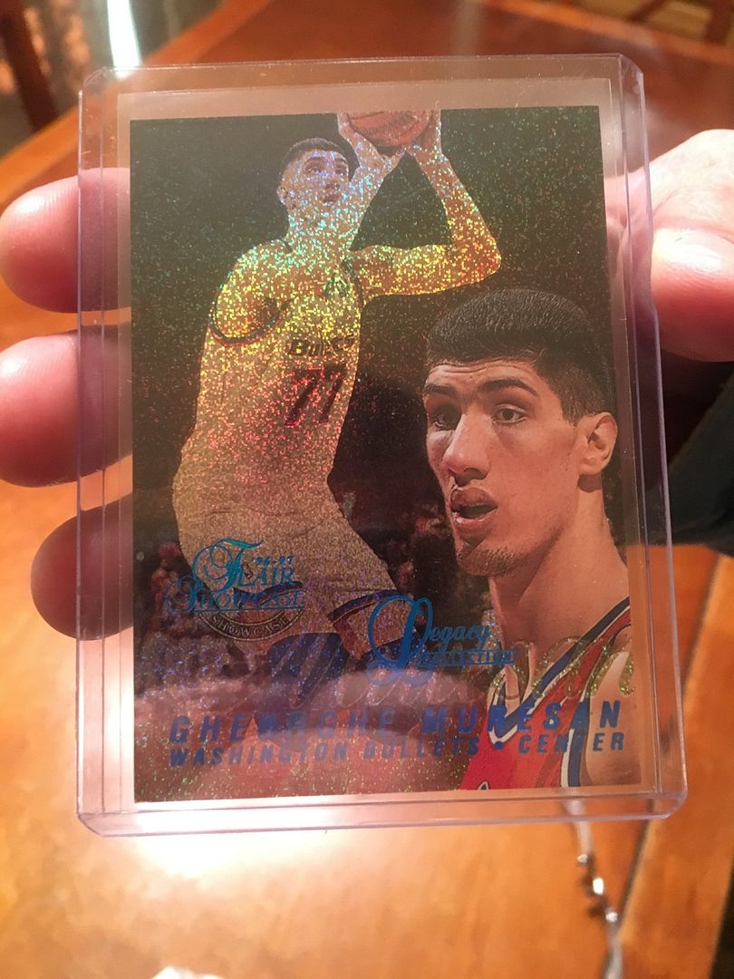 96/97 Flair Showcase Legacy cards had silver stamped foil. 97/98 Flair Showcase and 98/99 Flair Showcase have blue stamping on the back, while 98/99 Flair Showcase Row 1 had the blue stamping on the front. This Muresan is legit.